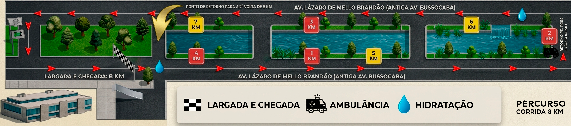 Já na distância de 8 km, o percurso contará com um novo ponto de retorno para a segunda volta, garantindo mais fluidez e melhor dinâmica para todos os atletas.